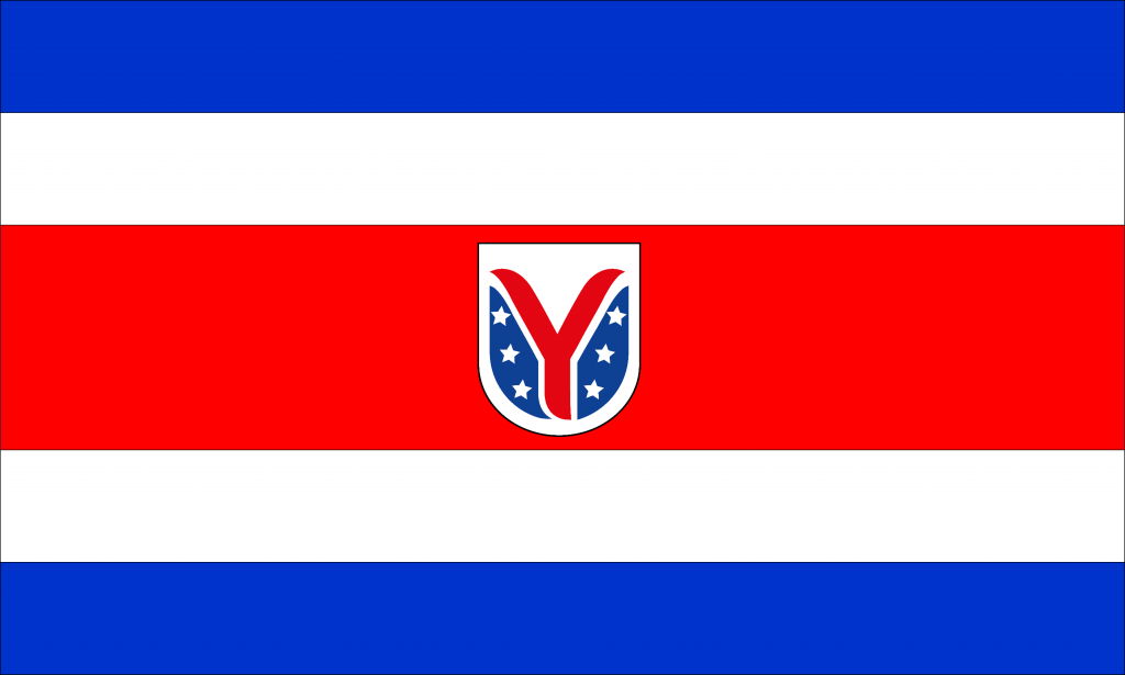 Compuesta por 5 franjas. Una roja en el centro simbolo de la sangre de Jesús que nos protege. Dos franjas blancas que representan la pureza, transparencia y alegría de nuestros estudiantes y otras dos franjas azules muestran de la grandeza, prosperidad y perseverancia para alcanzar metas, y el escudo en el centro.